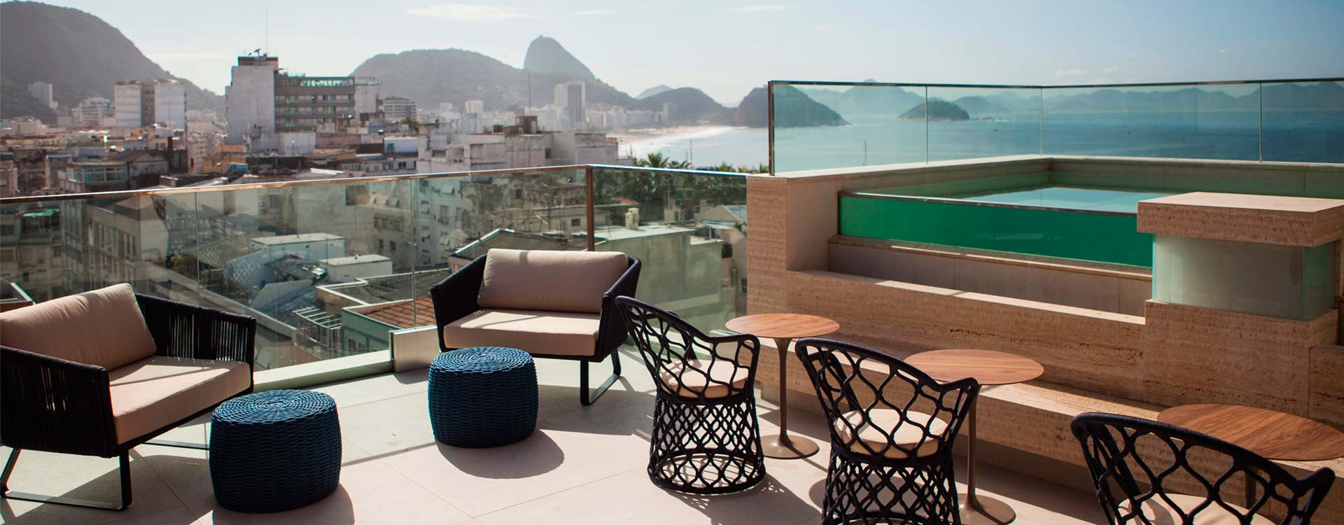 O Ritz Copacabana é um acolhedor boutique hotel que fica a uma quadra da praia de Copacabana, perto dos melhores restaurantes e bares da região, a 100 metros da praia (1 minuto a pé) e a 350 metros da Estação de Metrô Cantagalo (3 minutos a pé). O Hotel possui apartamentos confortáveis, restaurante, bar e piscina no rooftop com vista panorâmica sobre a praia de Copacabana, onde é possível assistir ao por do sol.